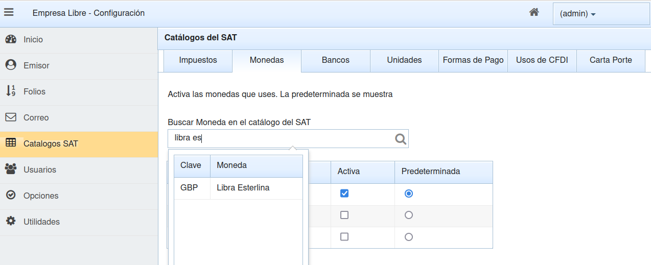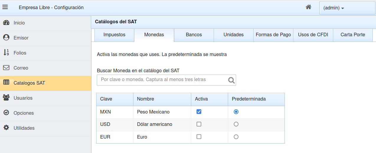 Primero asegurate de tener activadas las monedas a usar en las cuentas bancarias, en el menu Catalogos SAT, ficha Monedas. Marca la casilla de verificación Activa de las monedas que quieras usar.