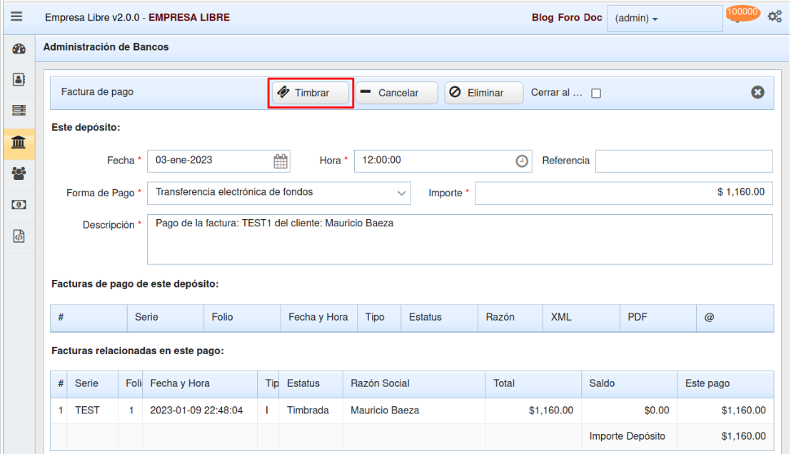Da click en el bot贸n de comando Timbrar.