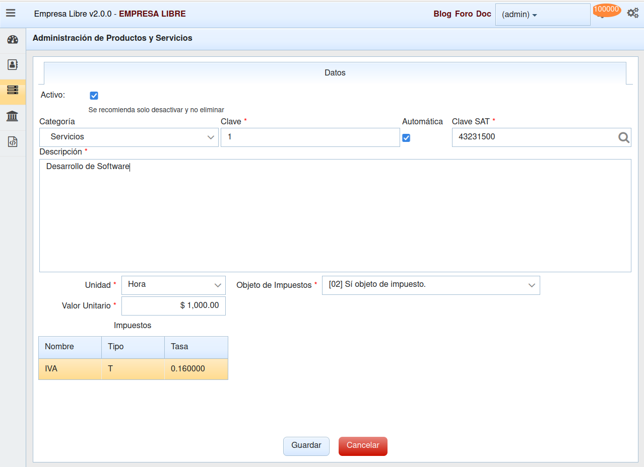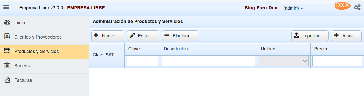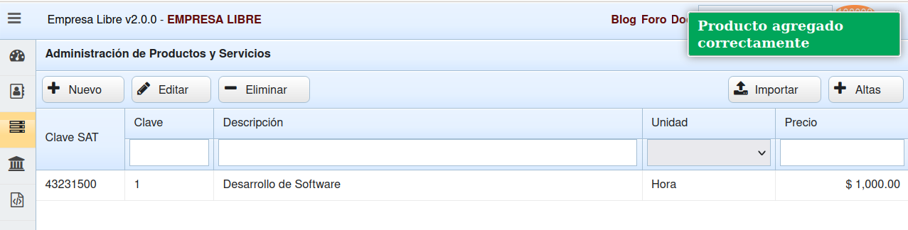 Usa el boton de comando + Nuevo para agregar un nuevo producto o servicio.