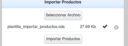 Da click en Seleccionar Archivo para navegador en tu sistema de archivos y seleccionar la plantilla de importaci贸n ODS previamente llenada.