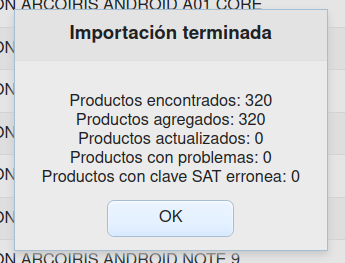 En cuanto estes seguro, da click en el bot贸n de comando Importar Productos para terminar el proceso. Debes de ver un cuadro de di谩logo de confirmaci贸n.